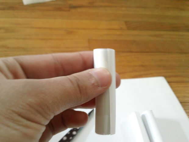 después de cortar un tubo largo en dos pedazos más pequeños tomar uno de los rollos menores y dóblalo por la mitad.