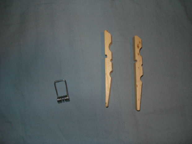 se necesita:Una pinza de ropa (madera)1 banda de cauchoHerramienta de corteHerramienta de la marca (opcional)Paso 1: Desarmar la pinza de ropa Simplemente deslice la parte superior de la pinza de la primavera. Y simplemente sacar el resorte. Ten cuid