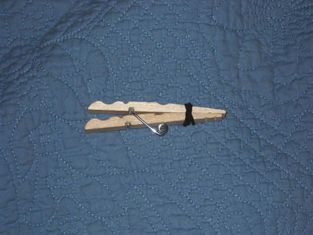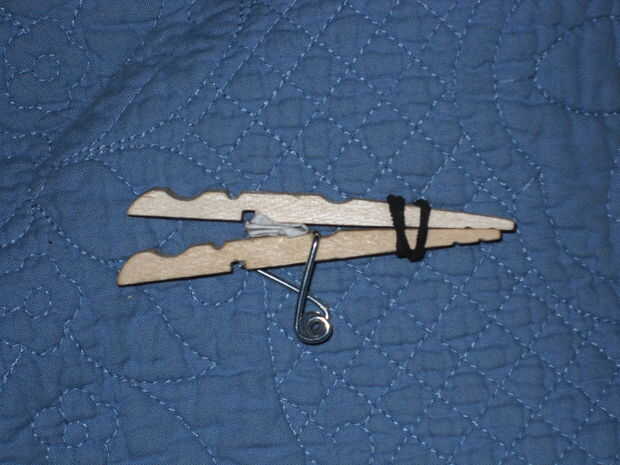 se necesita:Una pinza de ropa (madera)1 banda de cauchoHerramienta de corteHerramienta de la marca (opcional)Paso 1: Desarmar la pinza de ropa Simplemente deslice la parte superior de la pinza de la primavera. Y simplemente sacar el resorte. Ten cuid