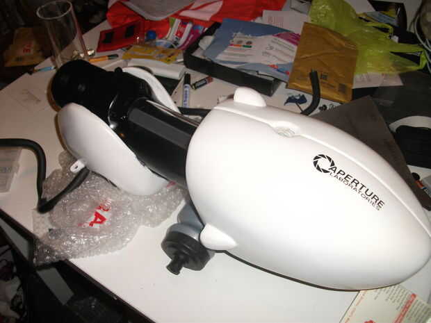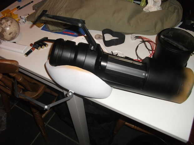 pega la cáscara trasera en la parte posterior de la pistola y profundizar en el orificio superior de la carcasa trasera. (20mm) de otra sección de la barra sólida para colocarse para llevar la luz hasta la parte superior de la pistola. (Asegúrese de que la barra principal difusor regresa al mismo punto que la parte superior de la barra alcanza las luces para que la luz se utilizará.