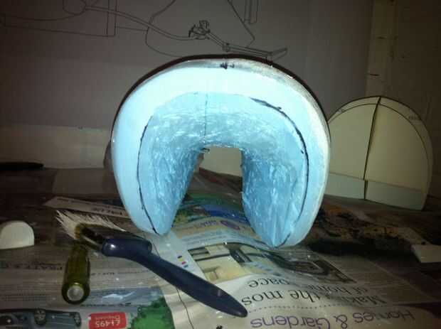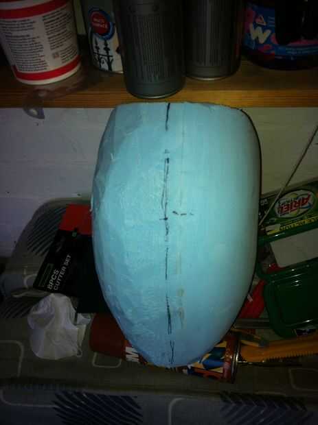 Luego use una lijadora de banda para llevar la espuma azul más cercano a la forma de la parte posterior y frontal.