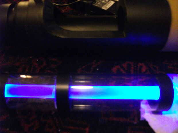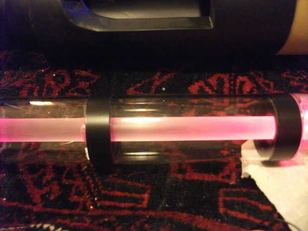 dentro de la clara 65mm tubo de la barra de luces es sostenido por dos discos más acrílicos y sobre ellos son algunos detalles (en las fotos he utilizado dos gran formato impresora carrete extremos.) pero utiliza lo que tengas a mano.