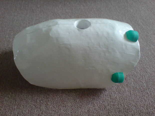 El big shell no era lo suficientemente suave para mi gusto así que hice hasta un Polyfilla mezclar pasta (como utiliza para las paredes) y sellela la cáscara entera para rellenar los huecos y suavizar la cáscara. Utilice una espátula para extender la pasta y luego un cuchillo mojado para cosas suaves, o moje la mano y correr.