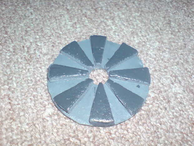 Cuadro 6 es la turbina poco como disco a veces puedes ver dentro del cañón cuando está encendida. Pegado a un pedazo de cartón con inserciones de espuma y corta el centro. Entonces todo pintado gris de dos tonos.