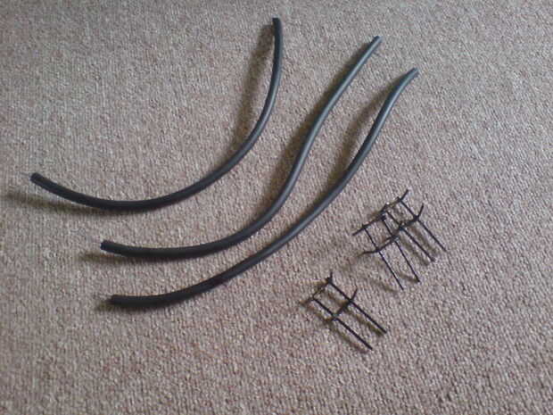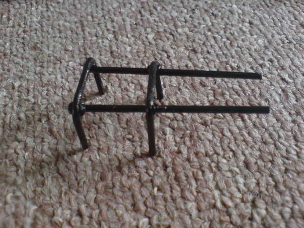 Cuadro 4 muestra los cables hechos de un tubo con el alambre de percha dentro que permite dar forma y rigidez. El alambre negro son cosas que, hecho de alambre de la percha. Cada uno es cuatro idénticas longitudes de alambre con dos doblados en forma de C y luego pegada a las otras dos longitudes (ver cuadro 5).