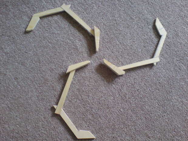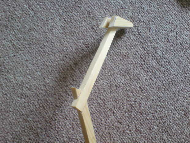 Cuadro 2 muestra los brazos que apuntan en la parte delantera del dispositivo. Los brazos se cortan de la madera y articulado de vuelta en su lugar. La parte frontal de los brazos el brazo principal del emparedado y llegado a un punto después de algunos whittling (ver cuadro 3).