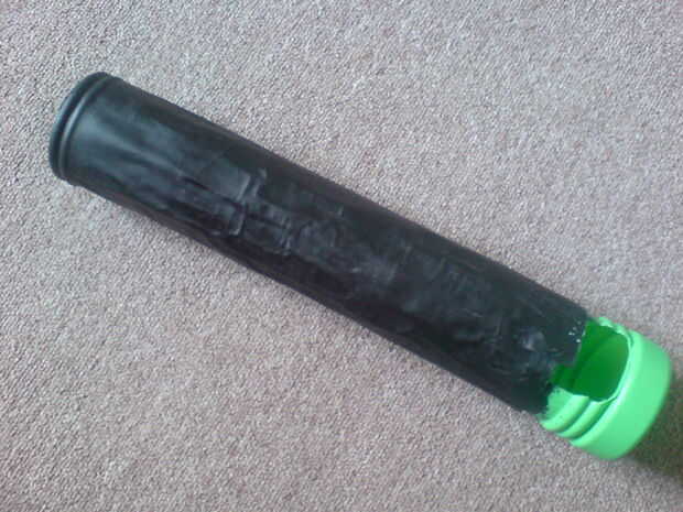 Entonces todo se construye en este cuerpo, a partir de la parte delantera. Corte un trozo adecuado de espuma y pegamento caliente lo en la barra para construir la forma. Usé una vieja estera del ejercicio unos 8mm de espesor que fue fácil de cortar con un bisturí, pero también significa dañado fácilmente y se deforma si en contacto con la boquilla de la pistola de pegamento, así que ten cuidado! Que forma la pieza frontal de espuma se hace cuidadosamente con un escalpelo, lo haz arreglado para arriba más adelante.