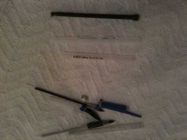 Paso 3: Salvar la "parte Clicky" del lápiz mecánico, claro (en este caso) tubo de portaminas, el tubo de cada pluma, y uno del cono en forma de puntas de uno de los corrales.