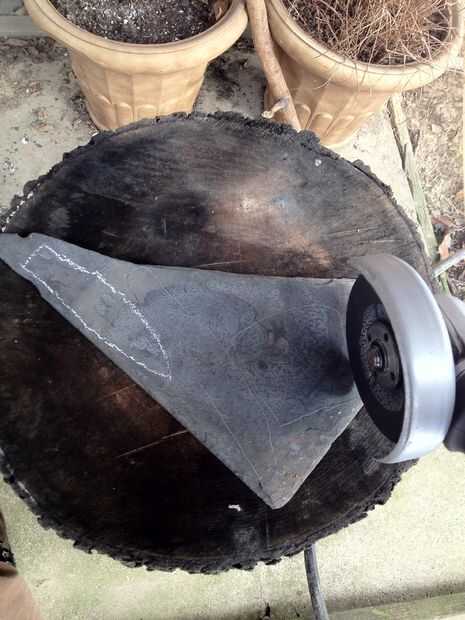 Con la amoladora o sierra, con cuidado corte la hoja en blanco. Ser paciente. Piedra es frágil, y una herramienta de corte de alta velocidad podría romperlo.