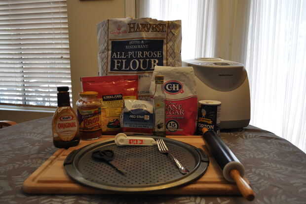 para los amantes de la pizza!Paso 1: Precalentar el horno a unos 450-500 gradosPaso 2: Se reúnen los ingredientes:1/4 cucharadita de sal-Gran recipiente-1 cucharadita de azúcar-1 set de levadura seca-1 taza de agua caliente-2 3/4 tazas de harina para