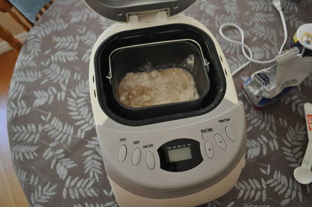.. .into el pan máquina o un tazón de fuente si no tienes una máquina de pan.