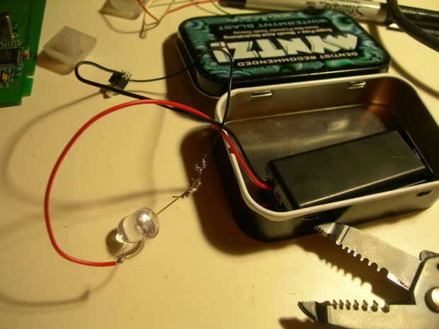 Una vez el circuito esté Equation y soldado, lo puedes pegar al fondo de la lata para que no se suelte.