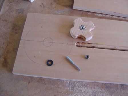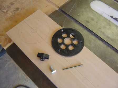 Mientras que lo más fácil es comprar un t-manija o manija de estrella para jigs, pero soy demasiado barata para hacer eso, así que hago mía. Toma un pedazo de madera, un tornillo que cuesta unos pocos centavos y toma pocos minutos para hacer. Yo los hago a granel para uso en todas mis plantillas, y no entraré en el proceso aquí. Es bastante fácil de simplemente cortar una forma te gusta, perfore un agujero en el centro para aceptar la t-nut y martillo en su lugar.