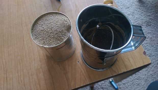 4) si usted tiene un tamiz inestable, no utilice la manivela o girar el mecanismo en su tamiz. Tentador que sea, no tiene el trabajo más fácil; sólo tiene éxito en jamming para arriba con la arena. Mucho más fácil era simplemente recogiendo arena y se sacude sobre mi lata hasta que la lata estaba llena. No te olvides de volcar las partículas grandes entre cucharadas.
