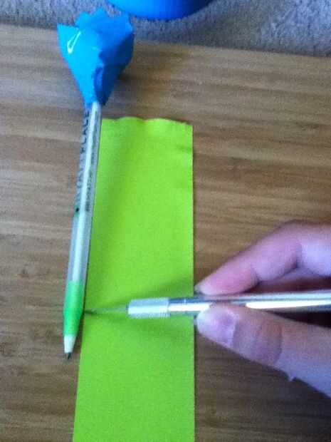 Cortar un trozo de cinta verde que es tan larga como el resto de la pluma. Tenga cuidado de que la tira no es demasiado largo y no cubre la punta de la pluma. Ahora envolver el trozo de cinta verde alrededor de la pluma y... ¡ Yay! Tienes una pluma de flor! Por favor deje un comentario y gracias por leerme! :)