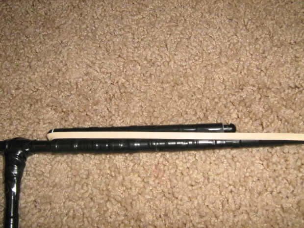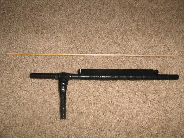 2) pegue el palillo entero con una capa de un pedazo largo de cinta. (no cinta más de una capa porque entonces podría golpear el interior del tubo al disparar.
