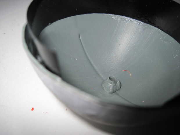 Necesitas una tira de su plástico negro que es suficiente para hacer un círculo con un diámetro apenas menor que el hemisferio. Este pegamento alrededor del borde de su hemisferio blanco.