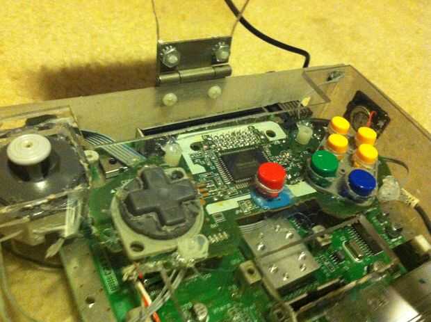 Con mi portátil que yo simplemente elaboró una plantilla con los recortes para los puertos de botones y regulador de L, R y Z (para multijugador) y que dibujé otra vez con las dimensiones exactas del real en una hoja de plástico de policarbonato, calienta el plástico a lo largo de las líneas de doblez y luego por supuesto doblado y formado el caso y después hizo un panel de ajuste que por la parte superior , que consiste en los botones analógicos, c, a, b, etc. y también señala a una ranura de pak del cartucho y expansión con sus recortes.