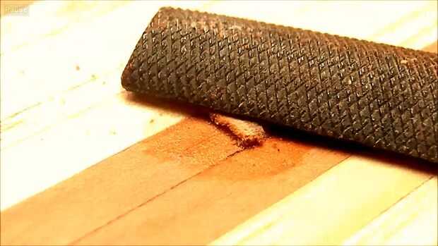 Cortar la parte sobrante y archivo arena lo ras de la superficie.
