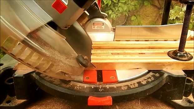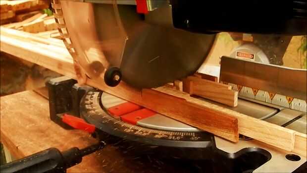 Cortar los palos que se pegan (juego de palabras?) con la sierra ingletadora.