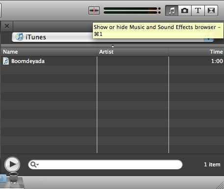 Como alternativa si ya tienes bytes de sonido o música en tu iTunes puede abrir en el cuadro de "música y efectos de sonido" en la esquina inferior derecha.
