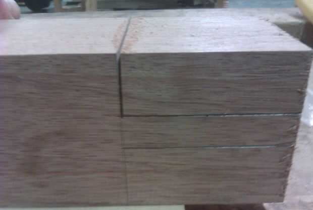 5 ahora corte los rebordes de las espigas con una espiga vio, sólo ir en cuanto a las marcas que ha dejado el indicador. Tómese su tiempo haciendo esto, la precisión es más importante que la velocidad! Si tienes un banco gancho entonces se harán las cosas un poco más fácil, si no no te asustes. Cortar los hombros en espigas entonces todos.