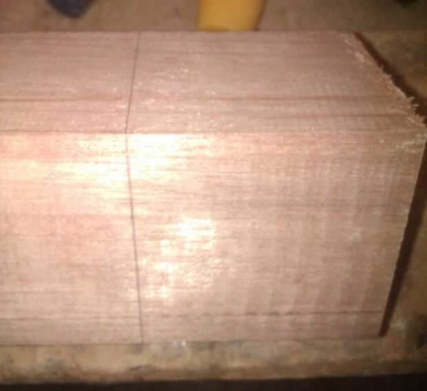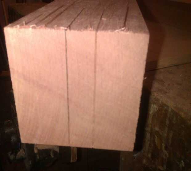 8 el mortices se cortan como las espigas! La buena noticia es que la parte más difícil es! Sólo tenemos que cortar dos cuñas para cada espiga que tenemos ahora, por lo es 8 cuñas pero cortar algunos extra para estar en el lado seguro!
