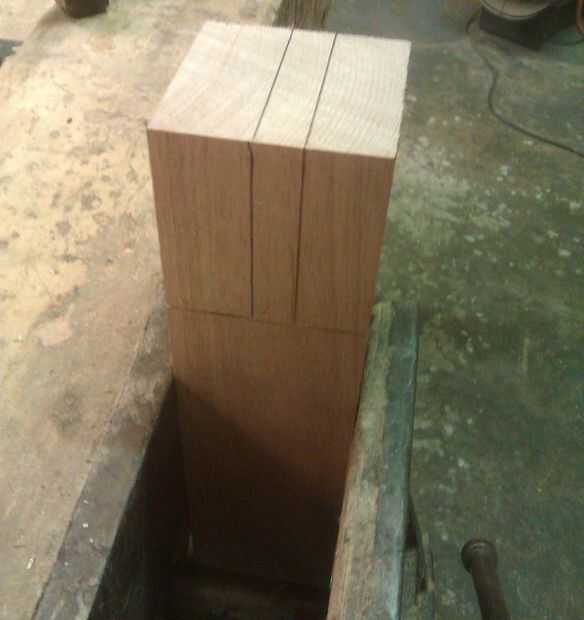 11 porque estamos cuñas corte todo el tiempo para espigas etc. tendemos a usar una plantilla en una sierra de cinta para cortar. Si tu solo haciendo la puerta lo es probablemente un poco por encima para crear una plantilla solo para esto. Así que cortar a mano alzada en una sierra de cinta (si no tienes una sierra de cinta es un trabajo de Sierra de la espiga!). Cuñas de quieren comenzar en alrededor de 20mm de espesor y forma cónico hasta alrededor de 2 mm o menos.