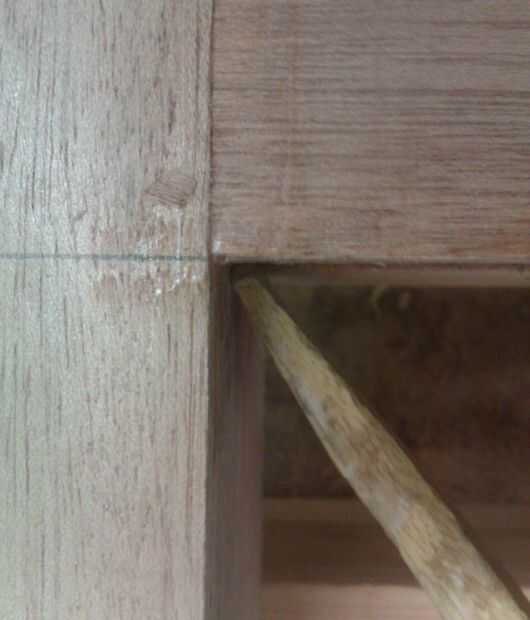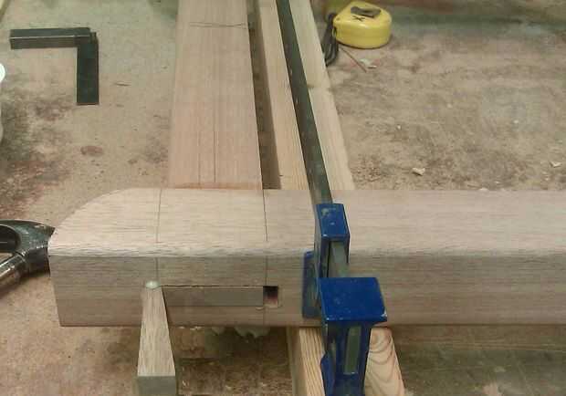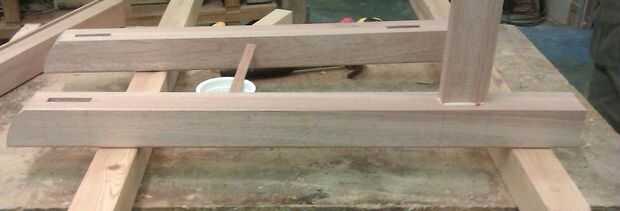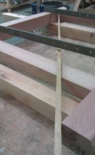8 ahora vamos poner el riel superior, cabeza de la puerta en la posición correcta - este entonces nos da algo para comprobar si la Plaza. Necesitamos posicionar este carril en su lugar utilizando las líneas que originalmente en los largueros de puertas cuando marcamos el mortices hacia fuera.
