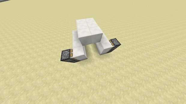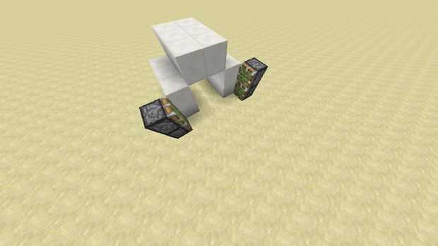 Ahora, quieren colocar los pistones en el orden indicado, y poner una antorcha de redstone detrás de cada sistema, con un bloque (cualquier bloque) por encima de las antorchas.
