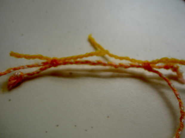 2. corte dos pedazos de hilo. Hilo de rosca funcionaría a si usted quería que fuera menos notable pero no es tan fuerte.