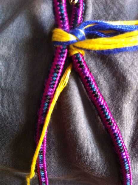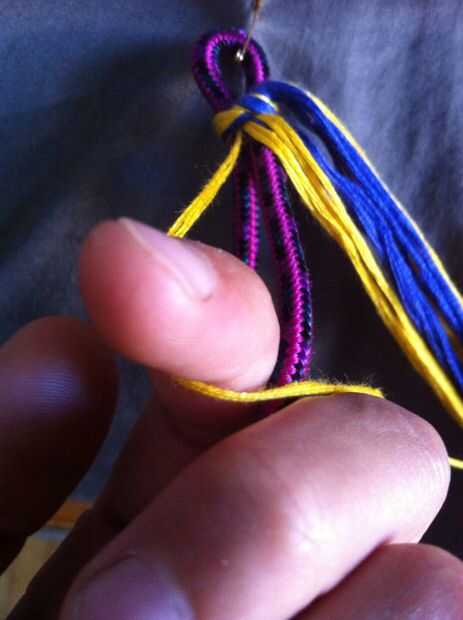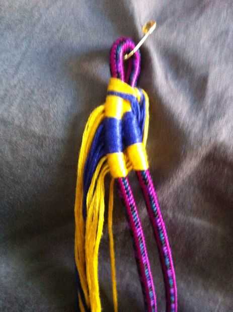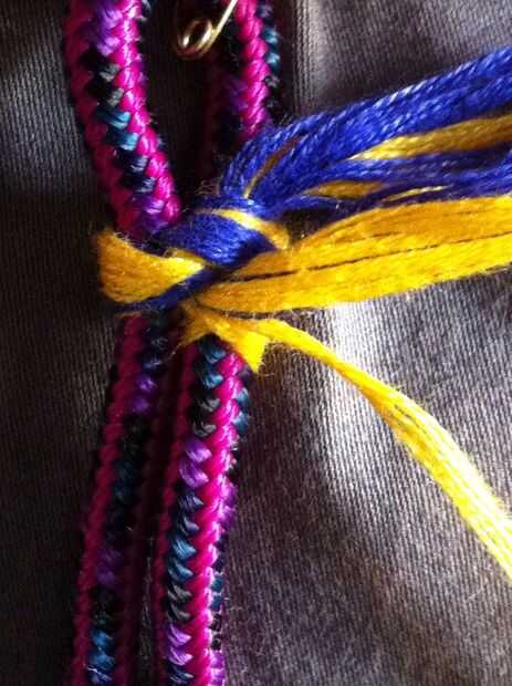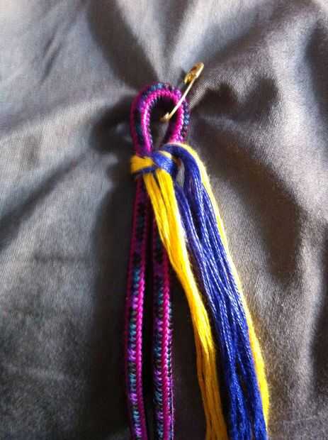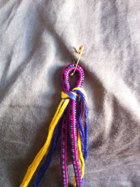 Abra su pin de seguridad y ponga el lazo hecho con el cable hacia un pin dondequiera que usted tenga gusto ya que es su ropa de cama o los pantalones. Básicamente donde se siente cómodo para usted. Por ejemplo me gusta a prender mis pulseras a Mis sábanas. Ahora toma un lado de las cadenas y traer a otro. Ahora usted debería ver que el color que quería bajar la media está entre los colores que desee en los lados. Ahora tome la primera cuerda y un 4 con el cable de primera y un nudo. Hacerlo dos veces. Ahora toma esa cadena en la primera cuerda y repetir este paso en el segundo cable. Hacer eso mismo paso en cada cadena hasta que todas las cadenas en el otro lado de la médula recibe diferentes.