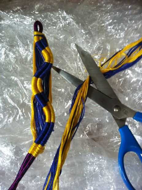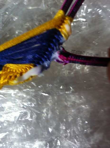 Como cortar las cadenas de exceso. Una vez que hayas hecho esto medir la pulsera en la muñeca y decidir cuánto cable necesita dejar caber a través del lazo y el lazo alrededor de su muñeca. Luego corte tanto cordón como usted no necesita. Luego tomar su encendedor y quemar los extremos de sus cuerdas. Y por último, pegar los extremos donde cortamos las cuerdas exceso. También me gusta usar lo poco de cable que cortamos para extender el pegamento a lo largo de los extremos. Ahora esperar un poco el pegamento se seque y tienes una pulsera ondulada que usted puede mostrar su ondulación al mundo!