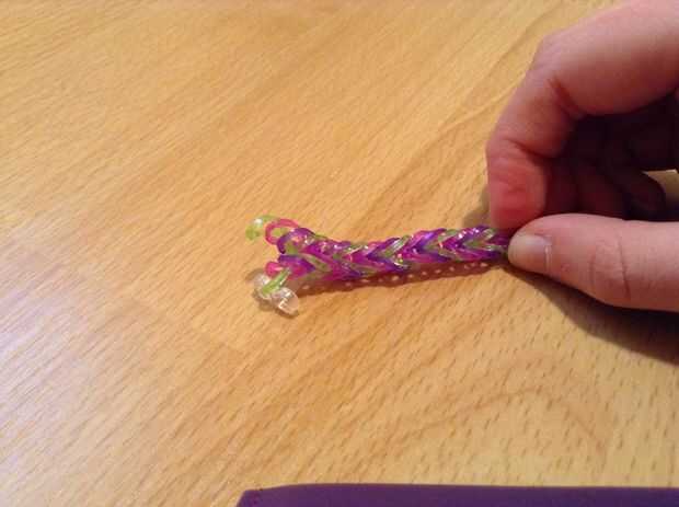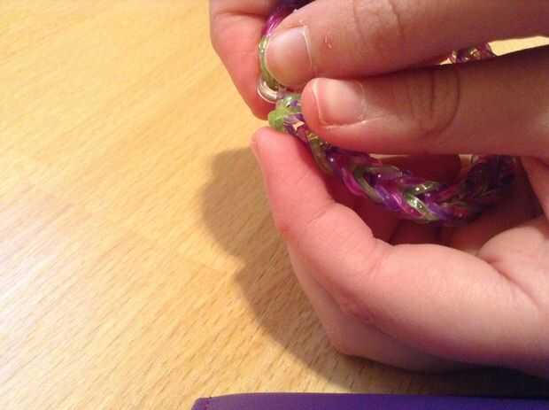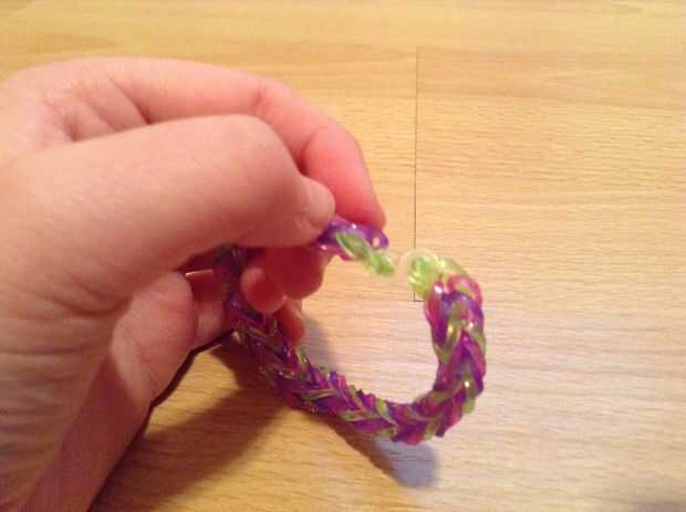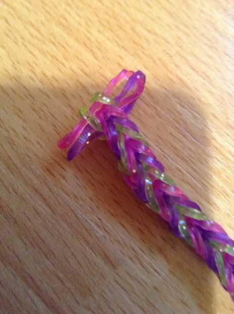 Cómo hacer una pulsera cola de pescado del telar de arco iris con los dedos (4 / 4 paso)
