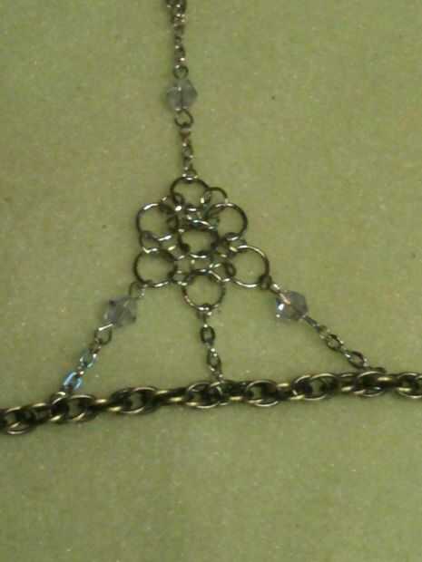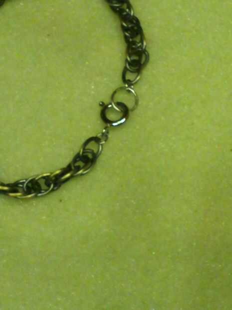 Con el alambre cortadores cortan bastante cadena para caber alrededor de su muñeca. Agregar corchetes al final de la cadena con anillos del salto. Con anillos de alambre y salto Conecte el chainmaille a la pulsera.