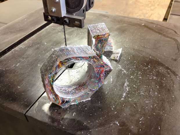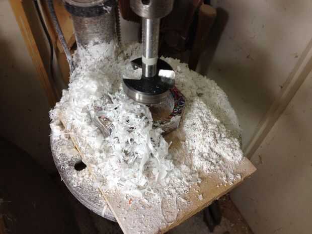 Que después de verter 15 onzas de epoxy taladré un agujero (el epoxi se endurece en aproximadamente 5 horas) para el interior diámetro un 2 5/8"