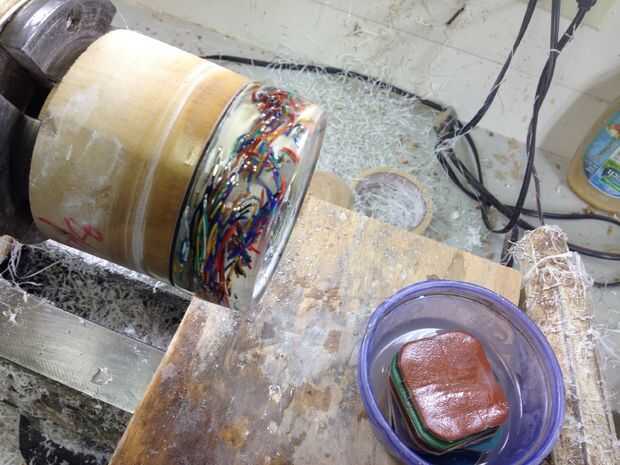 Después de un rápido cambio de dirección a un cilindro liso, comencé a lijar it... y lijado a lo... Me mojado lijada hasta 400grit entonces cambiado a mi alto grano tampones para pulir. 1200 de grano a grano 12000! Es un proceso largo. Todavía tuve que lijar el interior... pero lo hice a mano. Tardé una hora o así.
