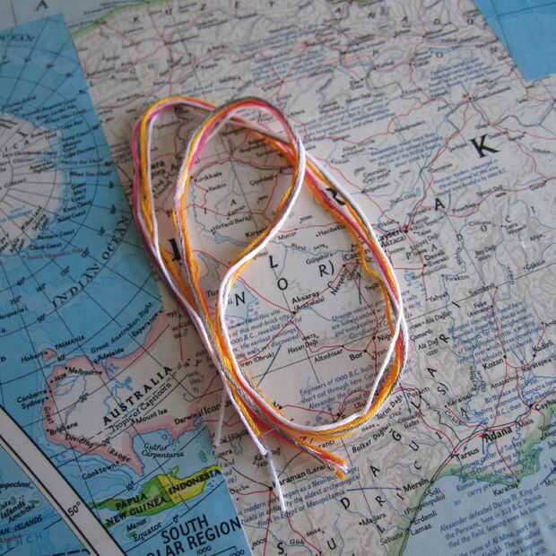 Si vas a hacer una pulsera que es de más de seis hebras sería una buena idea agregar otro 6 pulgadas, demasiado! Usted será hacer nudos extras con cada fila y pasando por tanto por cada color un poco más deprisa.