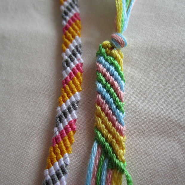 Y dependiendo de lo que desea que su patrón sea, puede utilizar dos colores alternados o cada hebra puede ser un color diferente. Usted puede conseguir un montón de bonitos los patrones con muy poco esfuerzo!
