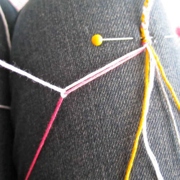 - Seguir adelante hasta que tenga 3 a 4 pulgadas de anudado hecho.