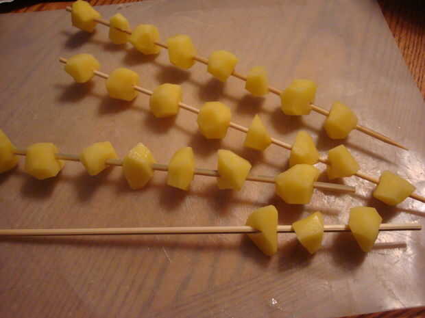 Poner los granos en los pinchos de bambú. Deje que seque. (generalmente tarda unos días a la semana) Cuando terminen los granos secado va a ser difíciles.