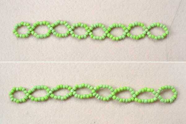 3 Repita el proceso en la 2ª hasta conseguir la longitud deseada para adaptarse a la muñeca y luego a través de los cables redundantes a la cadena del grano; Esto es una cadena de cuentas completa;