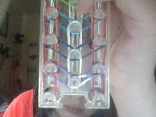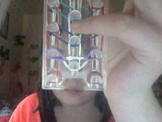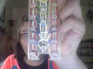 Agarrar la banda diagonal superior en el pasador central. Lazo a la patilla izquierda. Agarrar la banda restante en el pasador central. Lazo con el conector de la derecha. Agarrar la banda en el pasador central. Lazo derecho hasta el siguiente pin. Seguir recogiendo y colocación de las bandas hasta que haya colocado el último hacia arriba la banda. Después de que termines con los, agarra la banda en el eje izquierdo. Lazo derecho hasta el siguiente pin. Agarrar la banda en el eje derecho. Lazo derecho hasta el siguiente pin. Continuar haciendo esto hasta que han colocado las últimas bandas. Recoger y colocar las dos últimas bandas diagonal a la patilla central. Ahora, pase la frontera. Recoger la banda en la primera fila. Lazo en la primera banda diagonal que enlaza. Lo mismo para el a la derecha. Recoger la siguiente banda. Lazo directo. Lo mismo al otro lado. Continuar haciendo esto hasta llegar a la parte superior del telar.