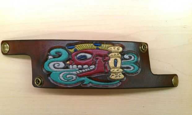 Hoy, voy a dar información para hacer una pulsera de cuero hechos a mano y fileteado. Para esta pulsera en particular me decidí a hacer una calavera de Mesoamérica. Puede diseñar cualquier cosa que tu corazón desea pero siempre ir con tu pasión. La forma de la pulsera es hasta el crafter, así. Quería hacer algo diferente de una forma de rectángulo normal. Para darle un carácter propia. La mayoría de estos artículos puede ser encontrados en tiendas de cuero de Tandy y arte. Para este proyecto necesitarás los siguientes elementos: