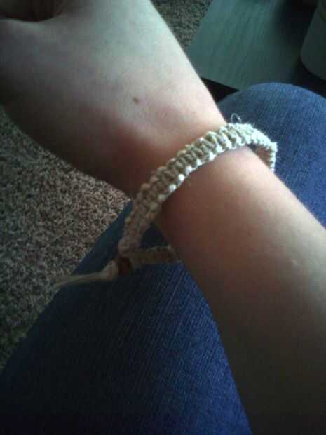 Asegúrese de que caben cuatro hebras de cáñamo a través del orificio de la perla