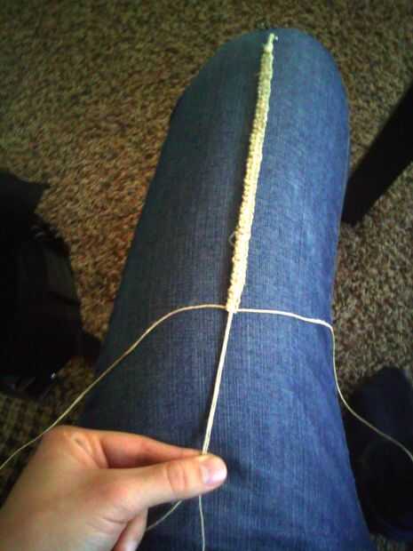 1. hacer los nudos hasta que queden 2/3 de la bajada de su muslo, o...