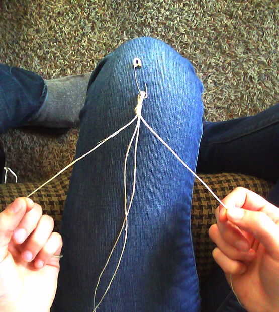 2. Tomar otra hebra de cáñamo en su mano izquierda.