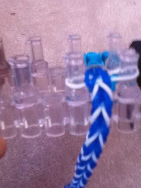 Ok ya casi terminamos ahora solo tenemos que hacer es no poner otra banda. Asegúrese de que sólo hay 2 bandas en el peg. Tome la banda inferior y bucle hasta
