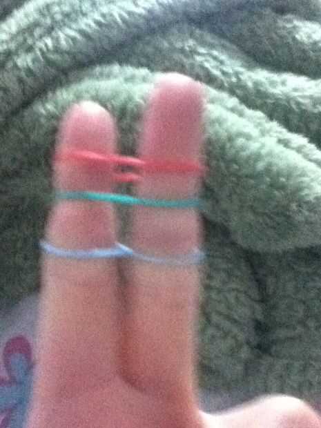 esta es una manera fácil y divertida para hacer una pulsera de cola de pescado!Paso 1: materiales Todo lo que necesitas son-2 dedos-bandas de telar del arco iris-una 'c' o de ' clip-pacienciaPaso 2: a partir de Tomar una banda y hacer y signo del inf
