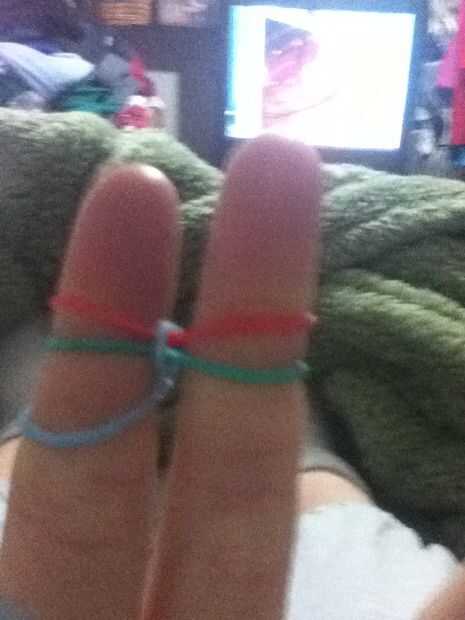 esta es una manera fácil y divertida para hacer una pulsera de cola de pescado!Paso 1: materiales Todo lo que necesitas son-2 dedos-bandas de telar del arco iris-una 'c' o de ' clip-pacienciaPaso 2: a partir de Tomar una banda y hacer y signo del inf